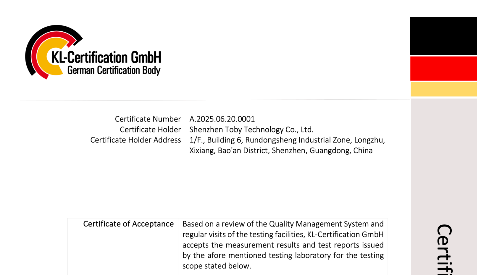 2025.10.17Cotecna approved as Amazon TIC Direct Validation body, helping sellers expand globallyCotecna is approved by Amazon as a Direct Validation (DV) body, providing trusted testing and compliance services to help sellers expand to global markets.2025.07.22Toby Accredited as a G-Mark Notified Body by GSOShenzhen Toby Technology Co., Ltd. ("Toby"), part of the Cotecna Group, has been officially accredited as a Notified Body (NB) by the GCC Standardization Organization (GSO) for the Gulf Common Market, following a successful on-site assessment by GSO.2025.02.21Toby: Your Go-To Lab for EU Common Charger Directive ComplianceEnsure EU Common Charger Directive compliance with Toby, a trusted Cotecna Group lab specializing in electronic and electrical testing.2024.03.10Brazil ANATEL Publishes Act No. 2436 on Network Security of Client DevicesOn March 7, 2023, the Brazilian National Telecommunications Agency (ANATEL) published Act No. 2436 on its website.